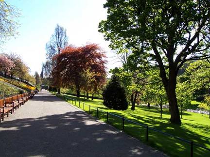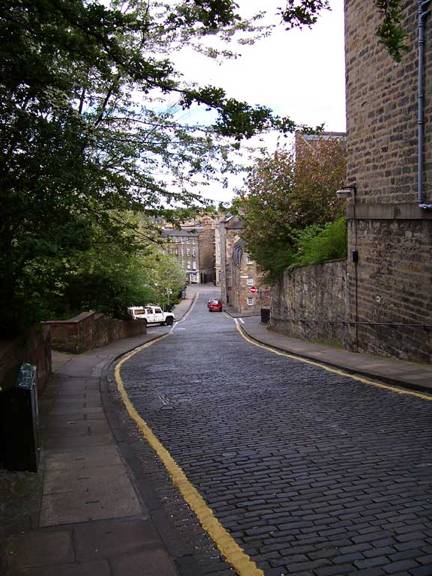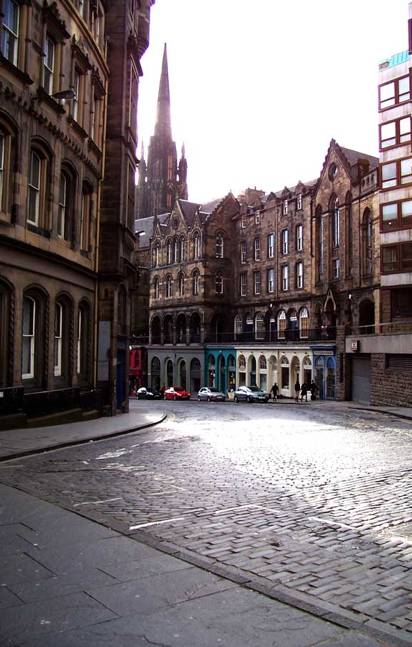 just South of the castle right off of Princes Street, a main thoroughfare of