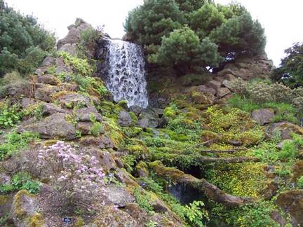 centered on a marvelous waterfall that cuts through it.