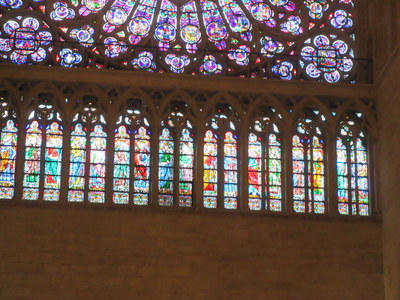 Here are the two rose windows in the transepts (the central one over the west door is blocked by the pipe organ).